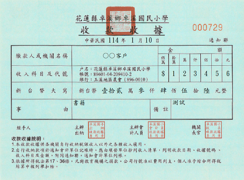 花蓮縣卓溪鄉卓溪國民小學-文件套印範本